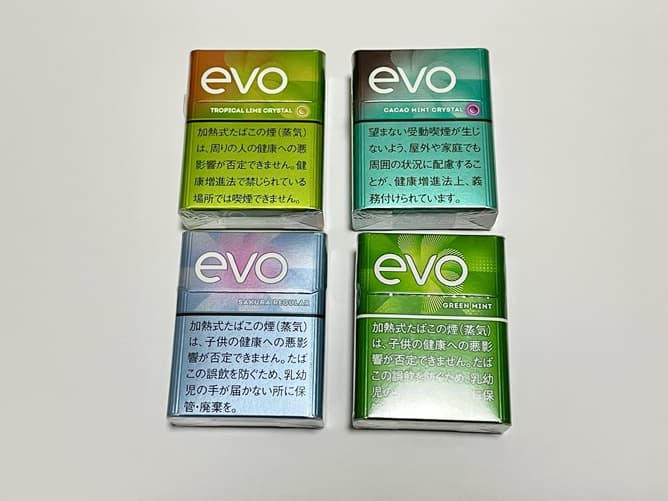 evo(エボ)は「プルームオーラ」、「プルームキューブ」で使える専用タバコスティックで、高温加熱式たばこデバイス「プルーム」シリーズのために誕生したブランドです。
