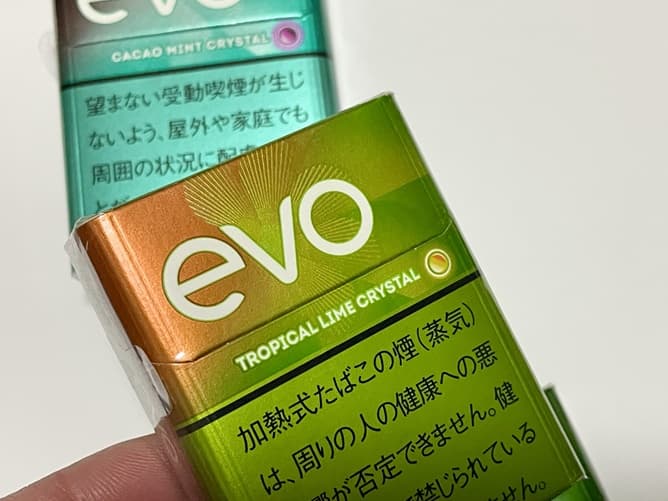 今回、エボから登場した4つの新フレーバーを吸ってみましたが、メビウスやキャメルシリーズよりも味の再現度が高くなったと感じました。特にチョコミントクリスタルと、トロピカルライムクリスタルは、かなり味の特長を掴んだタバコ銘柄だと思います。